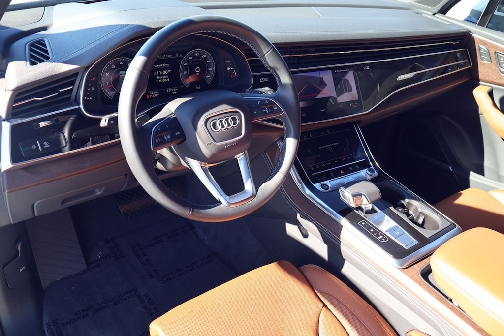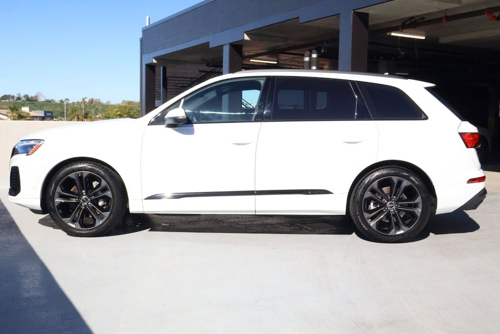 2025 Audi Q7 55 TFSI quattro Prestige Black Optic Only 5,313 Miles Experience full-size luxury, advanced technology, and confident quattro all-wheel drive capability in this exceptionally equipped 2025 Audi Q7 55 TFSI showing just 5,313 miles . Finished with the highly desirable Black Optic Package and loaded with the Prestige Package , this Q7 combines elegant design, refined performance, and true everyday versatility with 7-passenger seating . Powered by Audis responsive 55 TFSI turbocharged V6 paired with quattro AWD and adaptive air suspension , the Q7 delivers a composed, quiet, and confident ride whether commuting, traveling, or adventuring with family. Key Features & Highlights Prestige Package Bang & Olufsen 3D Surround Sound Dual-pane acoustic glass Four-zone automatic climate control Full-color head-up display Heated steering wheel & heated seats Power rear sunshades Top-view camera system Wireless phone charging pad Black Optic Package Dark chrome exhaust tips Black exterior trim accents 21 double-spoke alloy wheels Comfort & Convenience Ventilated front seats Panoramic glass sunroof 7-passenger seating configuration Bluetooth connectivity & wireless charging LED Lighting Plus Package Power tailgate Safety & Driver Assistance Adaptive cruise control with lane guidance Blind-spot monitoring Rear cross-traffic alert Lane departure warning Surround-view camera system Parking assist systems Additional Highlights Top-tier infotainment & virtual cockpit displays Premium interior materials with excellent fit & finish Dual pane acoustic glass for ultra-quiet cabin Condition With only 5,313 miles , this Q7 is gently driven, garage kept, and presents in outstanding condition inside and out. Non-smoker, well-maintained, and still covered by Audi factory warranty. Why this Q7 If you are searching for a near-new 2025 Audi Q7 with the right packages, the best color combination, low miles, cutting-edge driver assistance tech, and seven-seat practicality, this example checks every box.